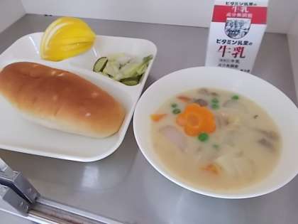 コーンクリームシチューの中に花形の人参が、たまに入っています。