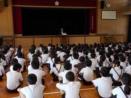 「国語、算数だけではなく、ふれあい班、掃除、右側通行、など、学校生活すべてが勉強であり、みんなでお互い助け合える子になってほしい。どうしたら、お互い助け合えるか、どうしたらいじめがなくなるか、考えてほしい」というお話がありました。