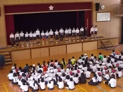 今年初めての講堂での児童集会でした。ゲーム集会の進行は集会委員会がするので、初めに集会委員会の紹介がありました。【写真1枚目】