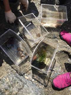 さかな、ヤドカリ、カニ、だけじやなく、ヒトデ、アメフラシ、イシコ、ウニ、ウミソウメンなど、珍しい生き物に出会えました。
