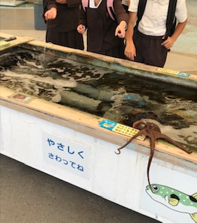 触られるのを嫌がって(?)タコが脱走しようとしています。