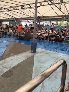 500キロを超えるセイウチかが腹筋、シャボン玉をしています。最前列に座るうちの子です。