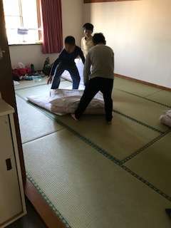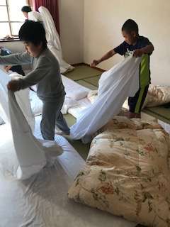 みんな寝相悪くて、掛け布団がシーツからはみ出ています。元に戻すのが大変です。