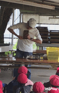 谷常さんから焼き板制作の説明を聞いています。