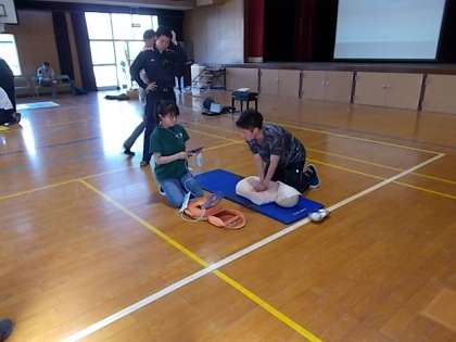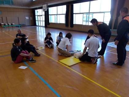 来週からプールが始まります。事故はあってはならないことですが、毎年この時期に、万一のために、職員全員が、港消防署、救急救命士の方から心肺蘇生法を学びます。