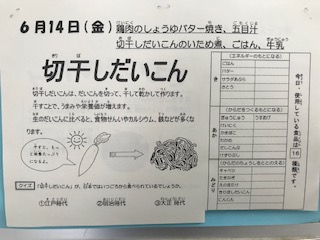 鶏肉のしょうゆバター焼きです。バターのほのかな香りがバターの好きな児童にはたまりませんね。