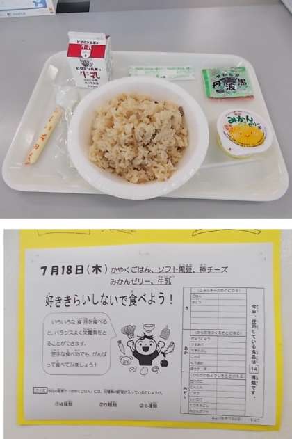 調理を伴わない給食も最終日、かつ、1学期の給食も今日で終わりです。