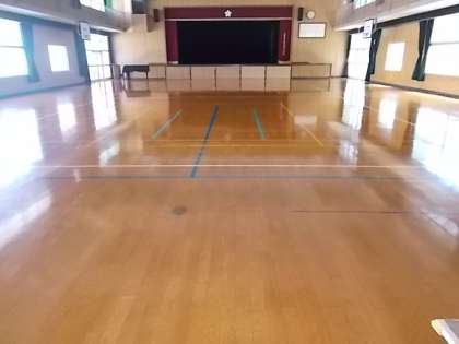 業者による講堂のワックスがけをしました。 ピカピカです。