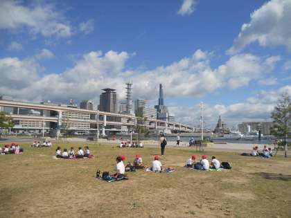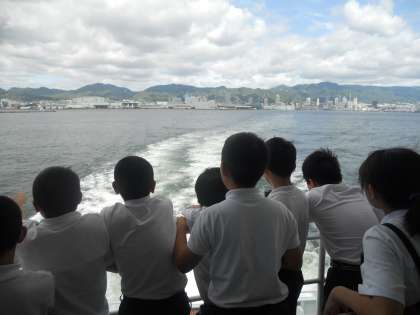 神戸の景色や大型客船、潜水艦?に大興奮。