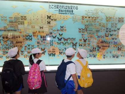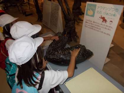 目をきらきら輝かせながら、さまざまな動植物の化石や標本に見入っていました。