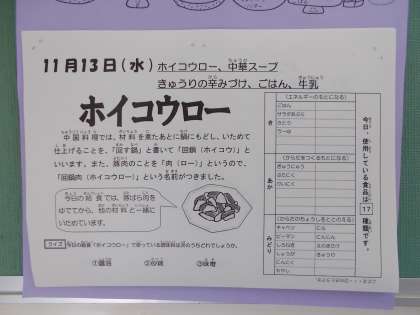 今日のホイコウローですが、豚肉とキャベツにプラスしてピーマンも入っていました。野菜の苦手な子にとってはちょっと苦しかったかな?