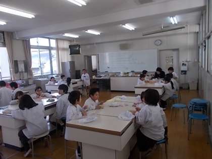 学習園で育て収穫したサツマイモを調理して、スイートポテトを作りました。すりこぎでつぶしたサツマイモにバター、砂糖、牛乳を加え、オーブントースターで待つこと15分。おいしいスイートポテトの完成です。手作りのおいしさにみんなの顔もほっこりした表情になっていました。