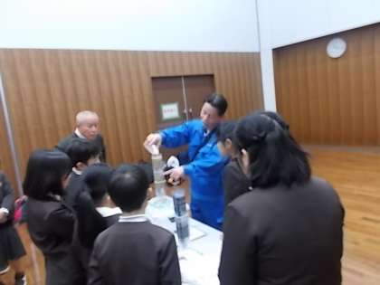 その後、水がきれいになる仕組みについて、実験をしました。みんなで協力して行うことができました。
