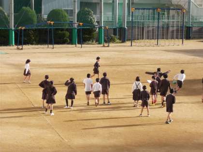 昨日(20日)の放課後の様子です。5-1のほとんどの児童が男女混じってドッジボールをしています。