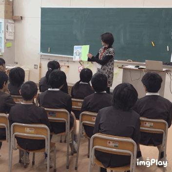 写真は5年1組です。高学年でも、じっと聞き入っています。