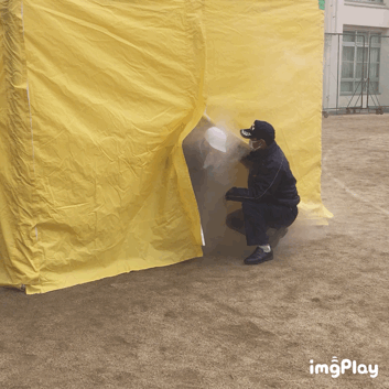 3人1組で、白い煙(疑似煙)の中へはいります。