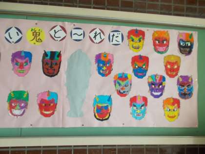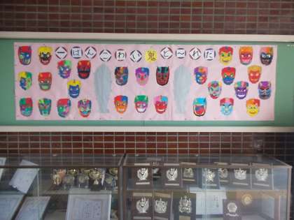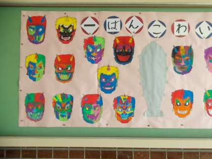 2年生の作品です。近づいてみると、もっとこわいです…。