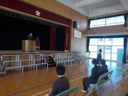 証書授与とよびかけ、歌の練習をしました。とはいっても、