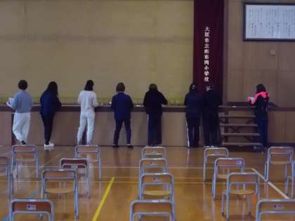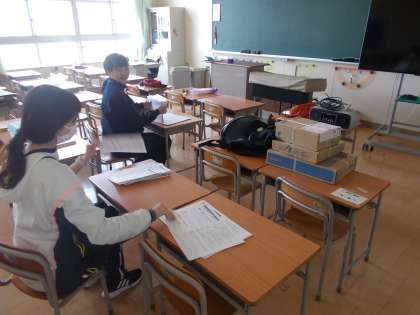 明日12日(日)の教科書等の配布に向けて、教員、管理作業員、給食調理員も、南市岡小学校の教職員総動員で、準備しました。