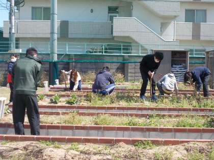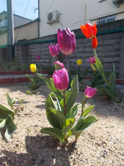 子どもがいないので、学習園のチューリップも寂しそうです。