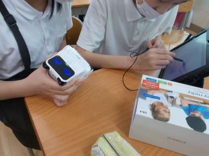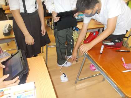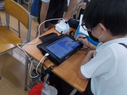コーディ君を、動かします。教室で机の脚の周りをまわるように、プログラミングしました。6年生は昨年も少し触っているので、スムーズにできる子も多くいました。写真は2組です。1組も後日行う予定です。