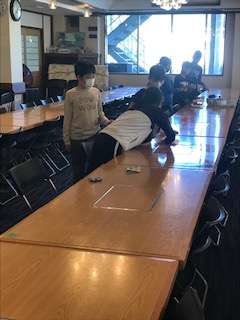 食事係があと片付けをします。