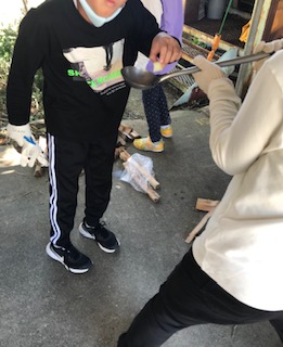 にんじんとジャガイモが柔らかくなったら、ルウを入れます。ルウを入れてかき混ぜます。
