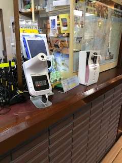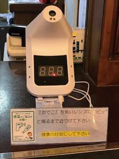 至る所に、消毒スプレー、非接触体温計が、常備されています。谷常さんありがとうございます。