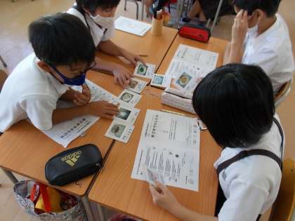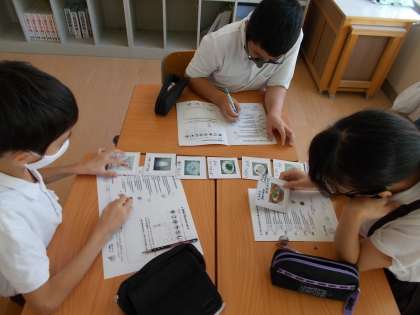 そして、成長期のみなさんにとって特に大事なカルシウムが多く含まれている食品をさがす、「骨づくりの王様決定戦」をグループで考えました。(もずくのカードも見えます。)