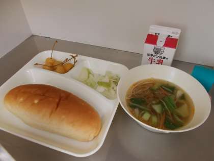 今日のは、赤くありません。「缶」ですからね。生のさくらんぼ(赤)をシロップにつけておくと、皮の赤い色が抜けて、黄色いさくらんぼになります。ちょっとやわらかくていやだという子もいましたが、好きな子は好きですね。今日のは山形県産のさくらんぼの缶詰でした。