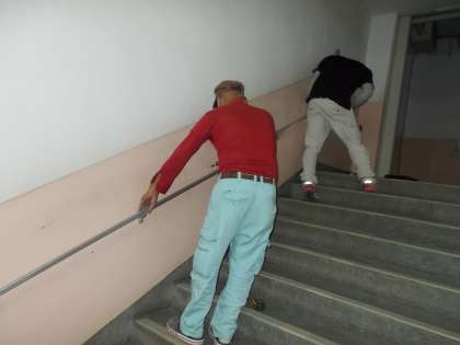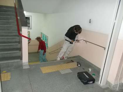 北校舎の保健室階段と音楽室階段には、手すりが片方しかついていません。