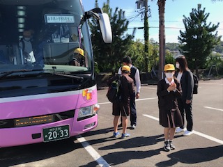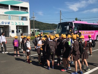 11時55分、鳥羽水族館に到着です。バスの中で食事クーポンを配りました。今から水族館の入り口に向かいます。みんな元気です。
