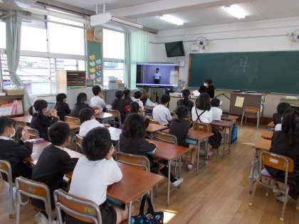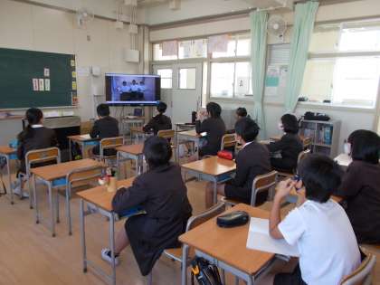 あらかじめ録画しておいた動画を、教室の大型モニターで見ました。