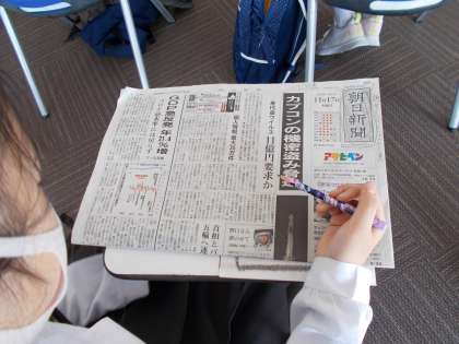 新聞社では、DVDや実際の新聞、用意していただいたプリントを用いて