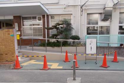 みまもるめでもご案内させていますように、玄関スロープは、中学校給食コンテナが通りますので、自転車での来校は、ご遠慮ください。
