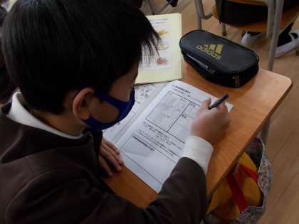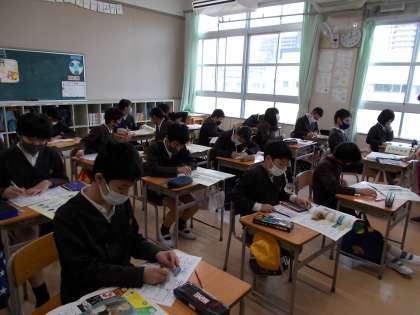 続きは家庭科の時間に仕上げます。【写真は1組。2組は後日行います。】