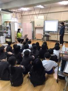 保健室で、トイレの使い方について振り返りの学習をしてから、身長と体重を測定しました。お正月にたくさんご馳走を食べて、大きくなったかな。
