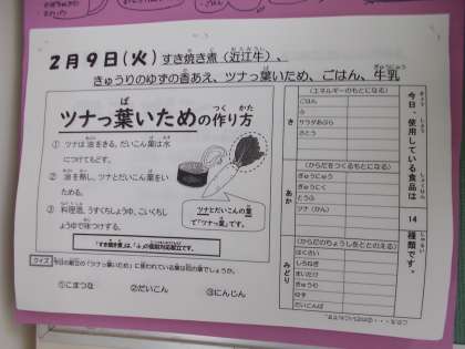 今年2回目の近江牛です。前回のカレーとは違って、肉の味を味わえました。すき焼き煮をご飯にかけて「すき焼き丼」にして食べている子もいました。