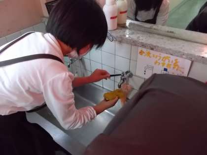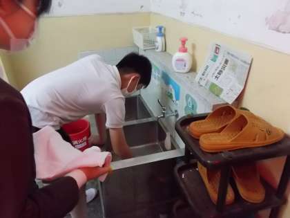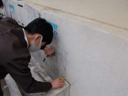 お世話になった学校をきれいにする「奉仕活動」を行いました。今年は手洗い場を中心に、メラニンスポンジやたわしを使って磨きました。