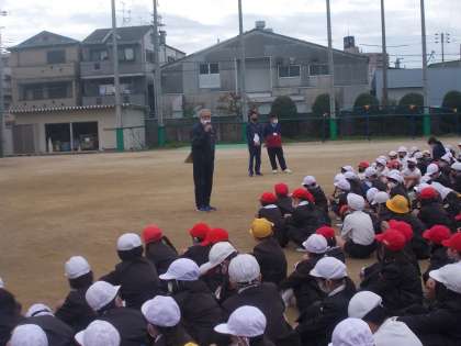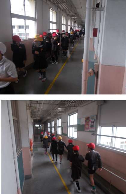 「家庭科室から出火した」という想定で避難訓練を実施しました。