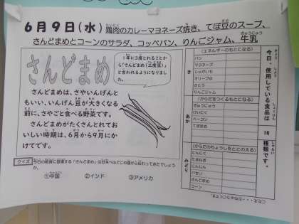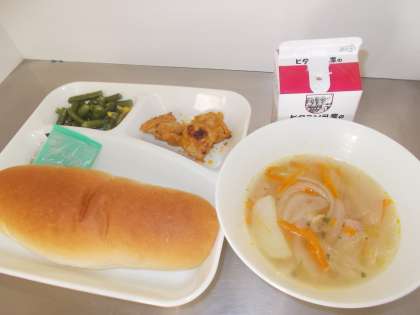 先生「スープにも白いてぼ豆が入ってるよ!」