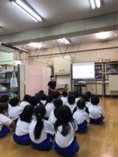 保健室で、手洗いについて詳しく教えていただきました。汚れが残りやすいところの資料を見て、正しい手の洗い方を復習しました。