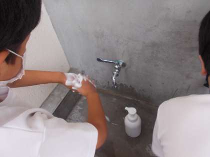 2年生では、「手洗い名人になろう」という学習で、手洗い実験をしました。