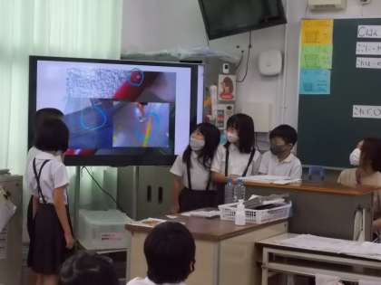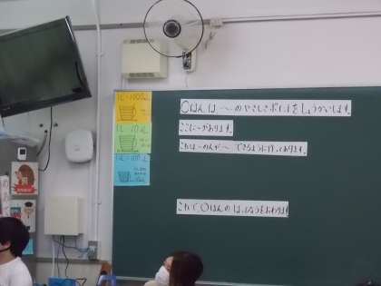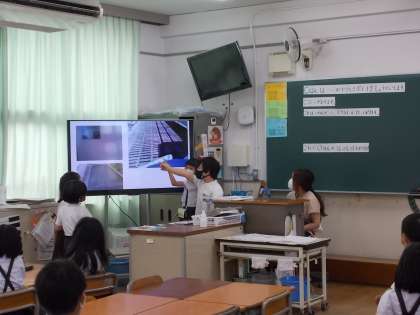 1人1台端末で全員、写真を撮る練習をしました。次に「ユニバーサルデザインを見つけよう」というめあてで、校内にあるみんなにとってやさしいポイントを撮りグループでまとめて発表しました。