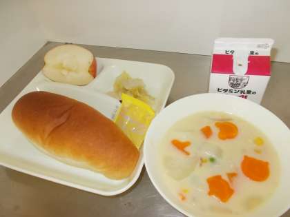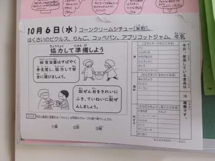 1・2年生は、食べやすいように、4分の1を縦に半分に切ってもらいました。歯抜けの子も頑張って食べていました。