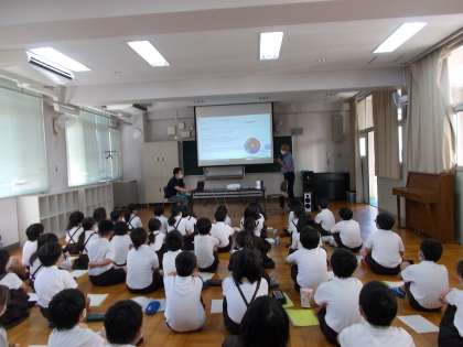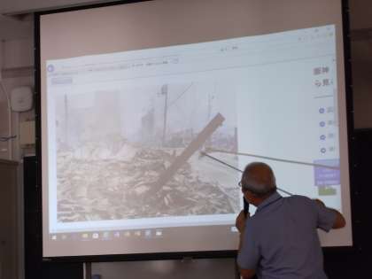 校長先生から、阪神淡路大震災の時のボランティア活動の経験や、当時の被害状況、小学校が避難所になっていたときの様子について、お話しを聞きました。