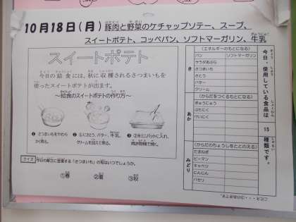 クリーミー(やわらかい)なポテトでした。高学年にはとても人気がありました。