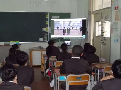 ビデオ配信の集会でした。運動・広報委員会の児童が、来週からの縄跳び週間に向けて、跳び方の紹介と、2重跳びにつながる練習方法などを、紹介したビデオです。