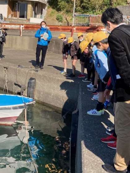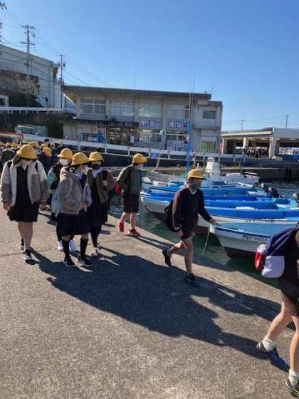 クラスを2つに分けて島内散策します。