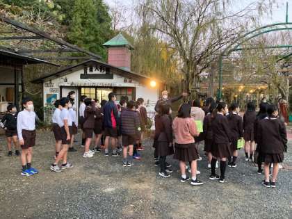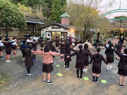 校長先生の話を聞いてから、ラジオ体操をしています。